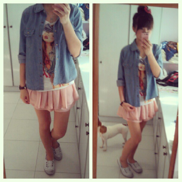 Denim shirt + denim shorts